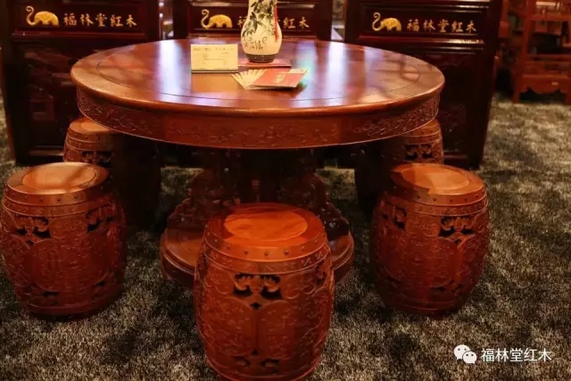 福林堂紅木—緬甸花梨木精品—福臨門(mén)面雕圓桌
